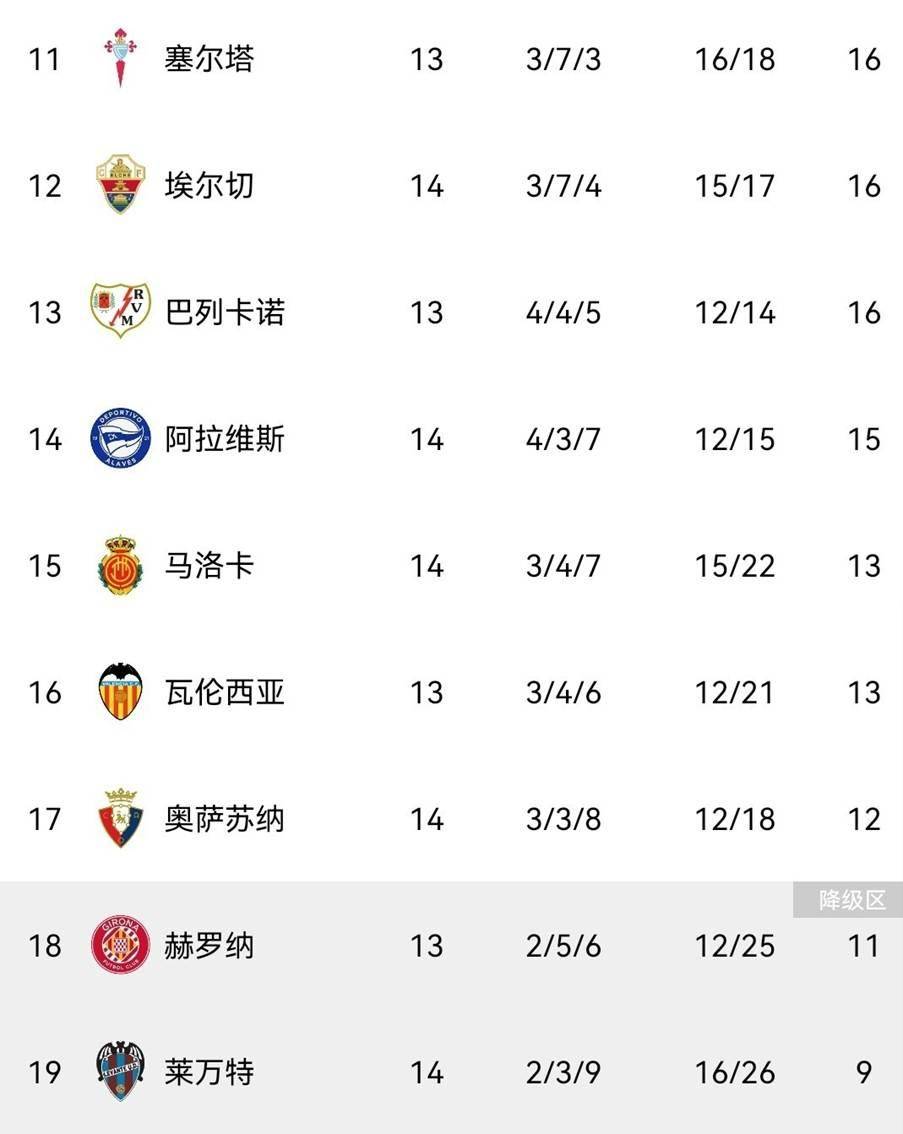 现在积分榜可热闹了:巴萨先赛一场34分登顶,皇马32分紧挨着,马竞31分虎视眈眈——前三名就差一场球的分数,这争冠大战简直比电视剧还刺激! 皇马虽然少赛一场,但接下来打赫罗纳要是有闪失,这领头羊位置可就悬了。