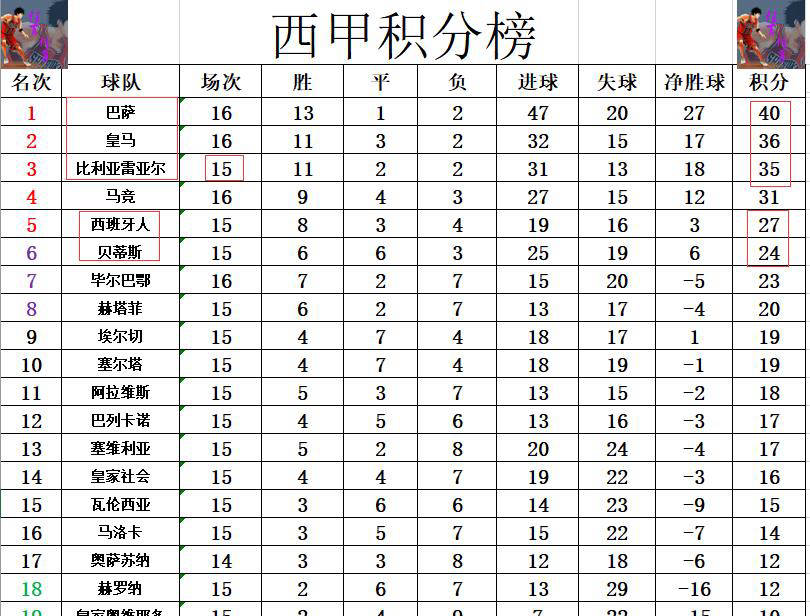 最新积分榜形势严峻,皇马近5轮表现令人失望,仅取得6分,其中4场丢分,排名由曾经领先巴萨5分滑落为落后4分,压力骤增。多赛一场的皇马如今仅领先比利亚雷亚尔1分,联赛第二席位也面临威胁。同时,西班牙人凭借胜利超越贝蒂斯,冲进积分前五。