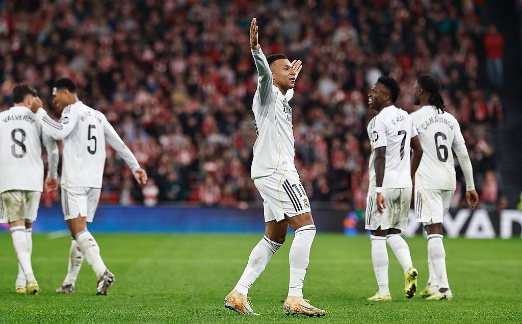 西甲直播,西甲赛程,西甲积分榜,皇马vs巴萨直播,西甲比分预测/为中文用户提供2025赛季西甲联赛全方位资讯:免费高清中文直播入口、赛程表、积分榜更新、皇马与巴萨动态追踪、竞彩推荐与比分预测。北京时间2025年12月4日凌晨,西甲第19轮赛事中,皇家马德里作客以3-0大胜毕尔巴鄂竞技。姆巴佩再次成为全场焦点,他在比赛中梅开二度,展现出极高的竞技状态。整个2025年,姆巴佩正迎来职业生涯最具爆发力的赛季。这场比赛中的两粒进球,使得他本年度为皇家马德里贡献的进球数累计达到了55球,展现了他的绝佳射门效率和持续火力。